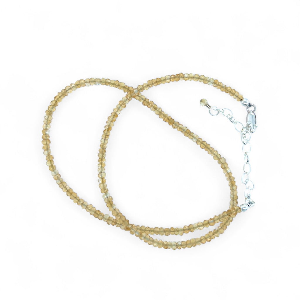 Faceted citrine beads with sterling silver clasp and extender chain. Can be worm between 16-18 inches. Great for layering. Priced for gifting!