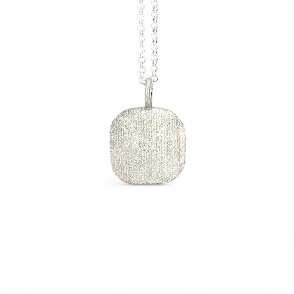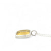 Squarish pendant fine silver pendant fused with 23.t karat gold utilizing the keum boo method with a sterling silver frame and bail patterned to sparkle.