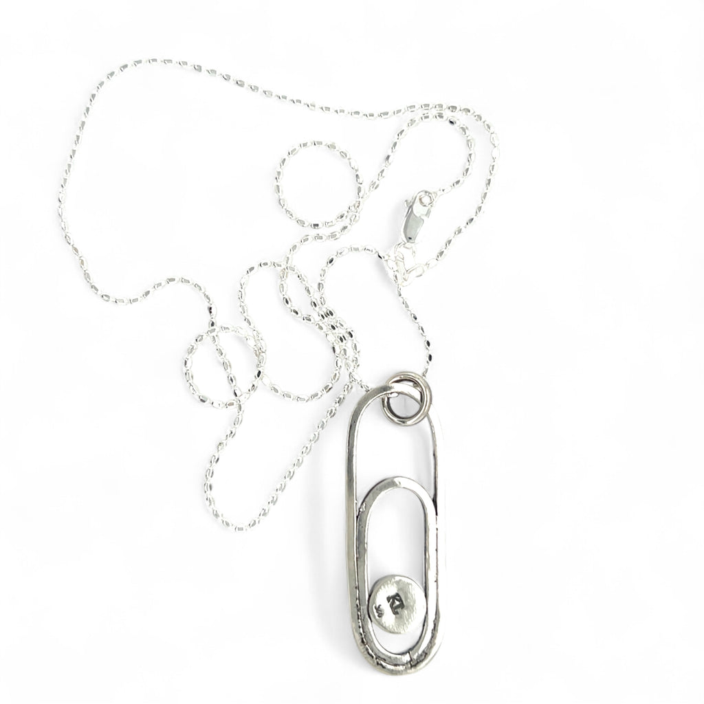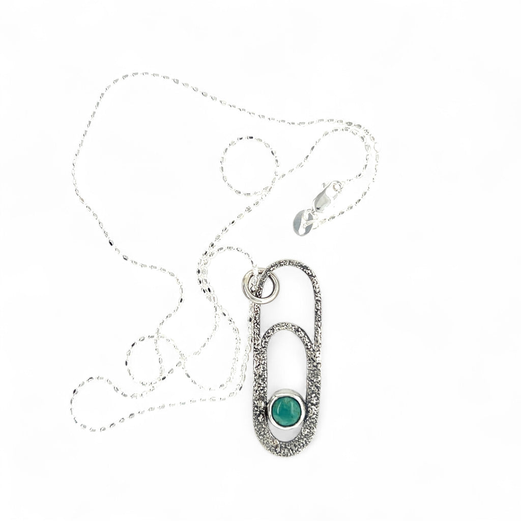 Paperclip pendant set with 5mm Tyrone turquoise (New Mexico) is accented with fused recycled sterling silver dust.